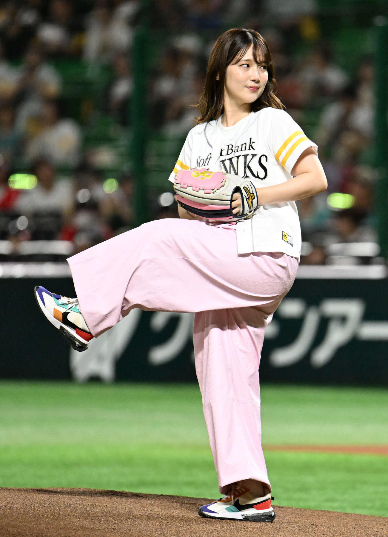 | … | 5325/09/05(金)22:50:33No.1350327544+>投げる前に「ホークス大好きなので、きょうは精一杯応援したいと思います。練習をしてきたんですけど、ちゃんと“通天閣投法”を学んできましたので、上へ上へ投げたいと思います」と宣言。山なりの投球を見せたが、三塁側に大きくそれるワンバウンドに苦い笑いだった。 |