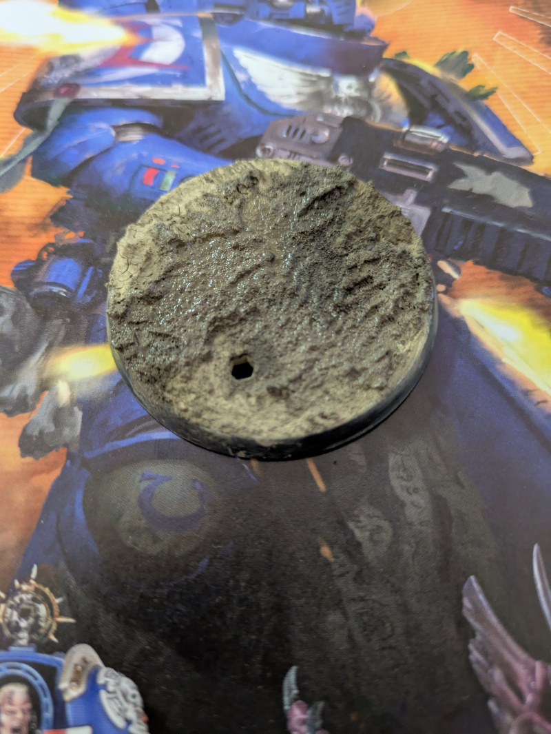 ウォーハンマーのベースにタミヤとクレオスの素材盛って泥作った