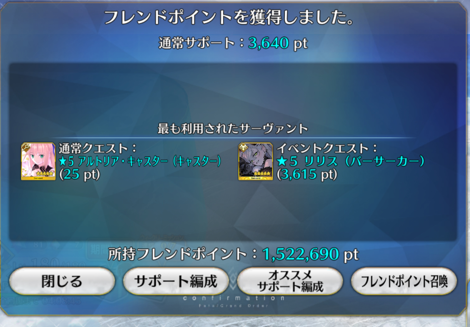 | … | 3425/09/07(日)23:41:11No.1351072570+戴冠戦で微妙に残ってたレオニーとケットクーの絆が10になったし徐福とリリスも石くれた |