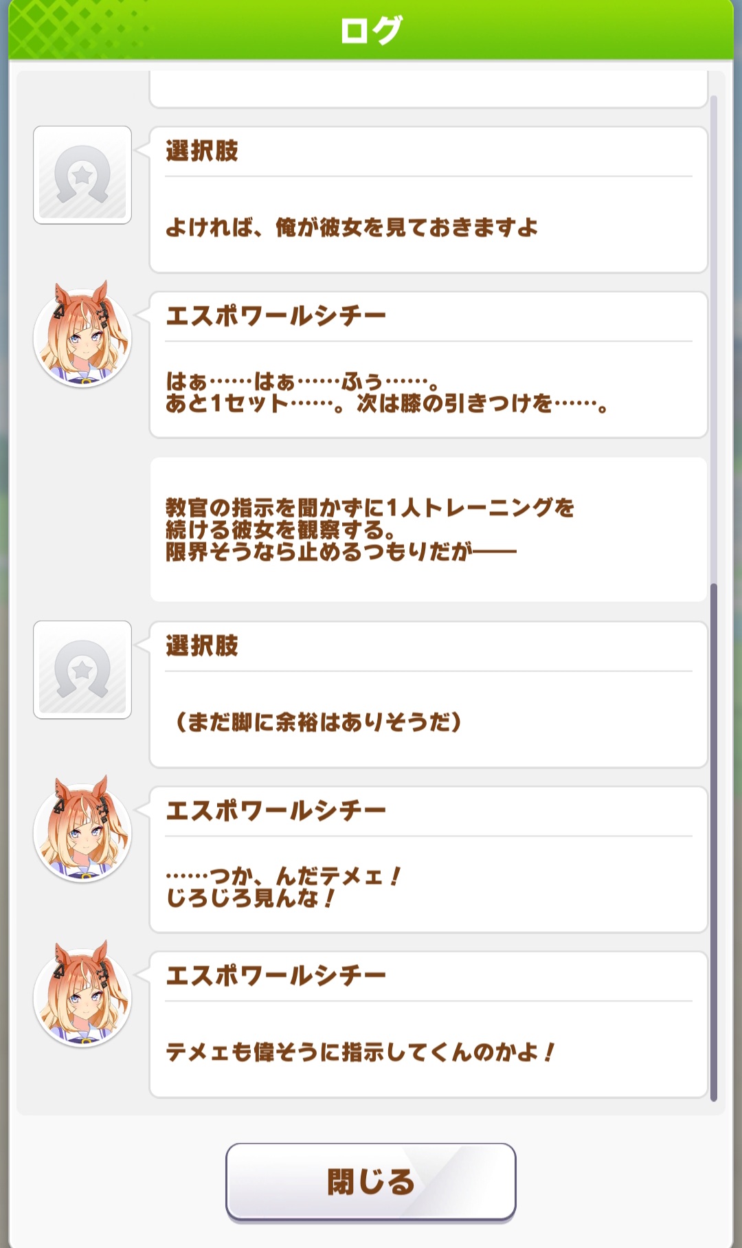 | … | 3225/09/08(月)12:18:52 ID:FjPjcTcsNo.1351172071+根性お嬢ヒント5のトレ公20は良い感じですがもう一声欲しかったですぬ |