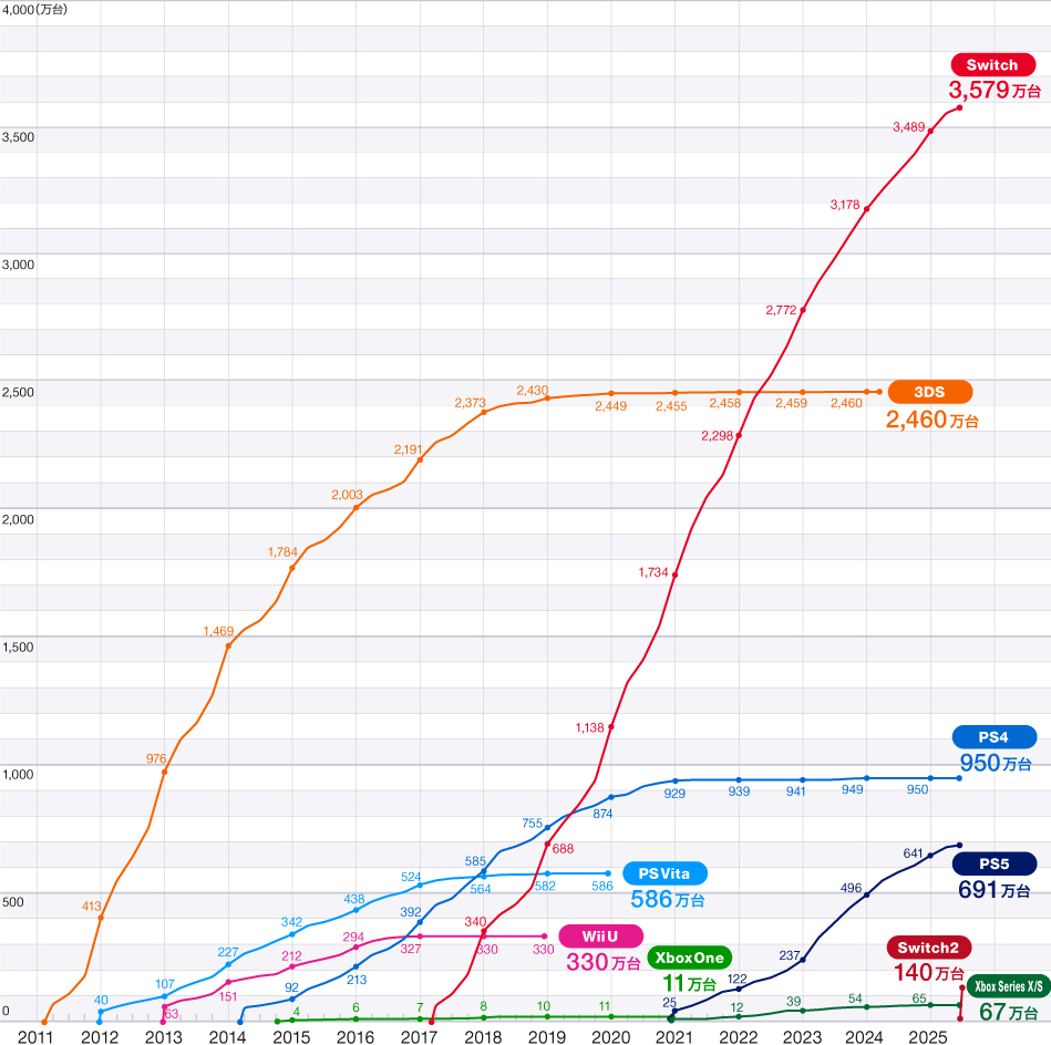 | … | 10625/09/08(月)12:43:03No.1351179642+>>今Switch2の売り上げが200万強とか聞いた気がするからPS5が2年かけた数字を半年かからずでやったのか… |