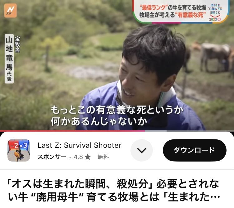 | … | 4125/09/08(月)12:20:59No.1351172721+牛は年一頭しか生まないんだからオスなら廃棄なんてやってられないよね |