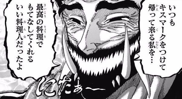 | … | 19125/09/08(月)18:59:18No.1351267133+いつもグルメ界の猛獣から受けた傷跡をつけて帰ってくる私を最高の料理で迎えてくれる良くできた妻だったよ |