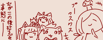 | … | 9325/09/08(月)19:16:29No.1351272803+>俺達はマスコット…? 「」でいるよりはいいだろ? |