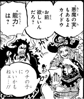 | … | 325/09/08(月)21:18:55No.1351324932+子供にいいなと思ってた天竜人の商品になるような実をもらったカイドウ |