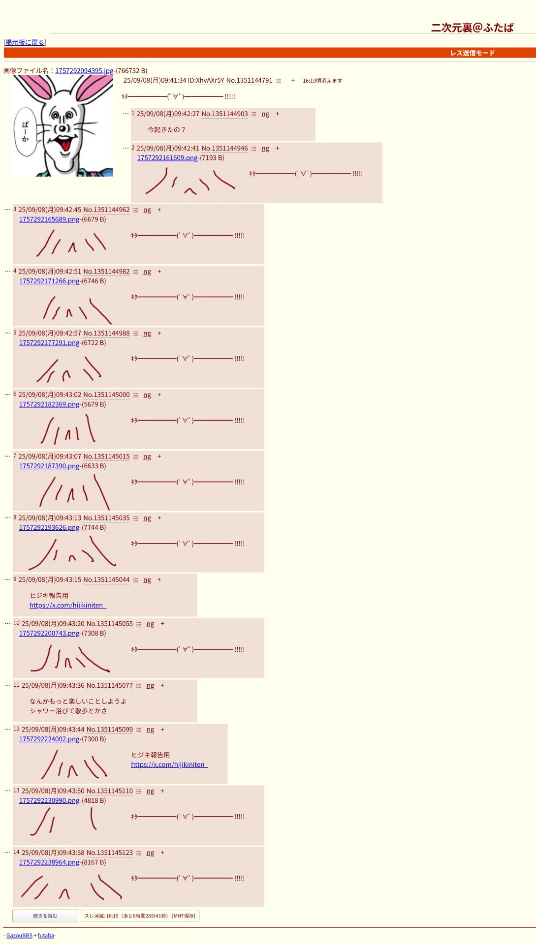 | … | 3925/09/09(火)23:50:02No.1351689027+ここまで自演 |