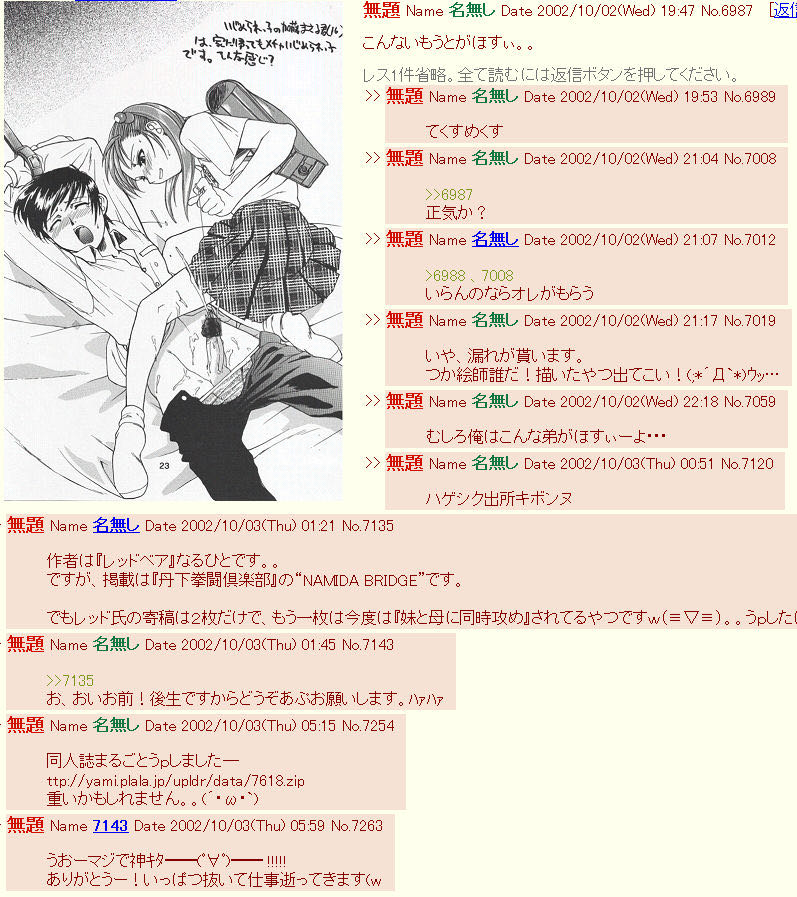 | … | 425/09/09(火)23:55:25No.1351690687そうだねx6同人誌のアップロード依頼はダメ. |