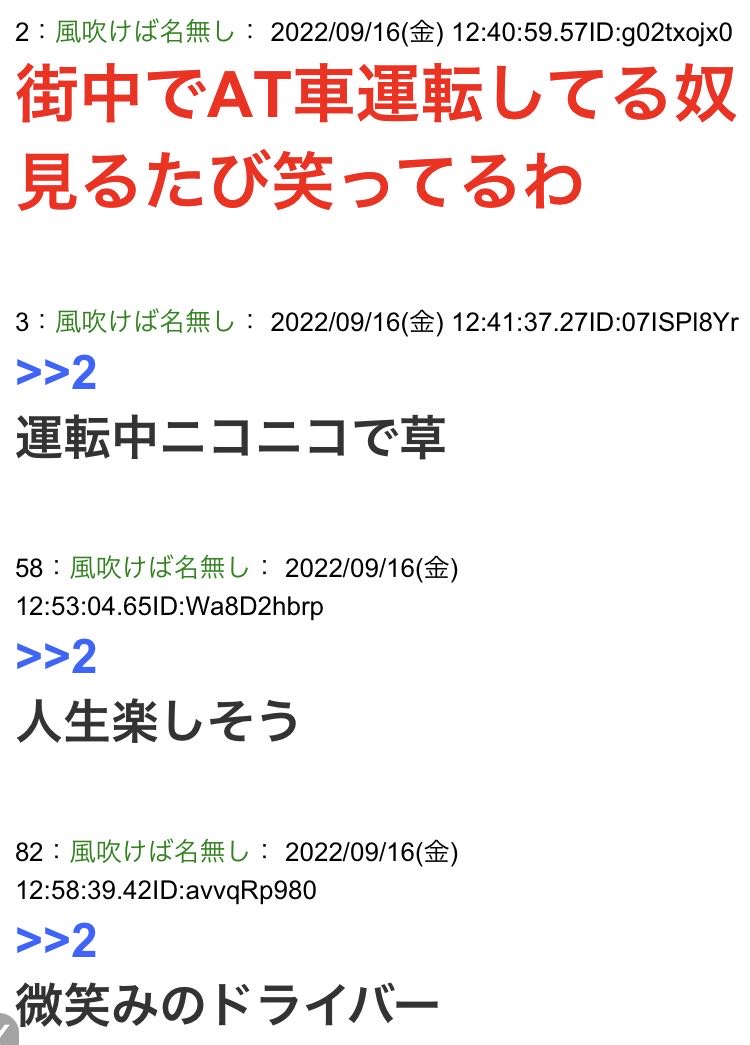 | … | 3425/09/10(水)08:56:34No.1351748447+AT乗りはこの車MTだ!とか意識したりしないのに馬鹿だな… |
