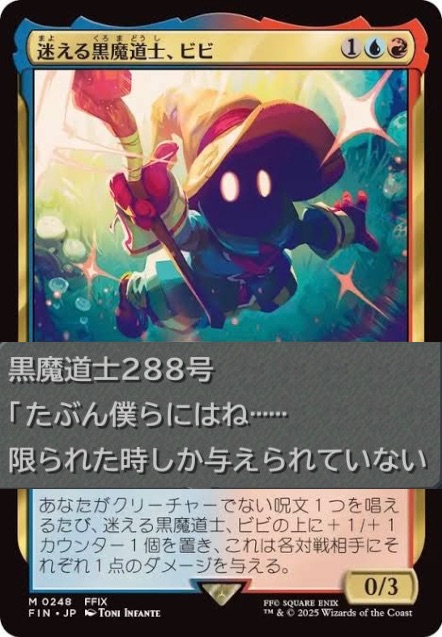 | … | 7325/09/10(水)13:50:18No.1351808565+>ビビに絡めて禁止告知にフレーバーテキストを入れてくるほうにティボルトの魂を賭ける |