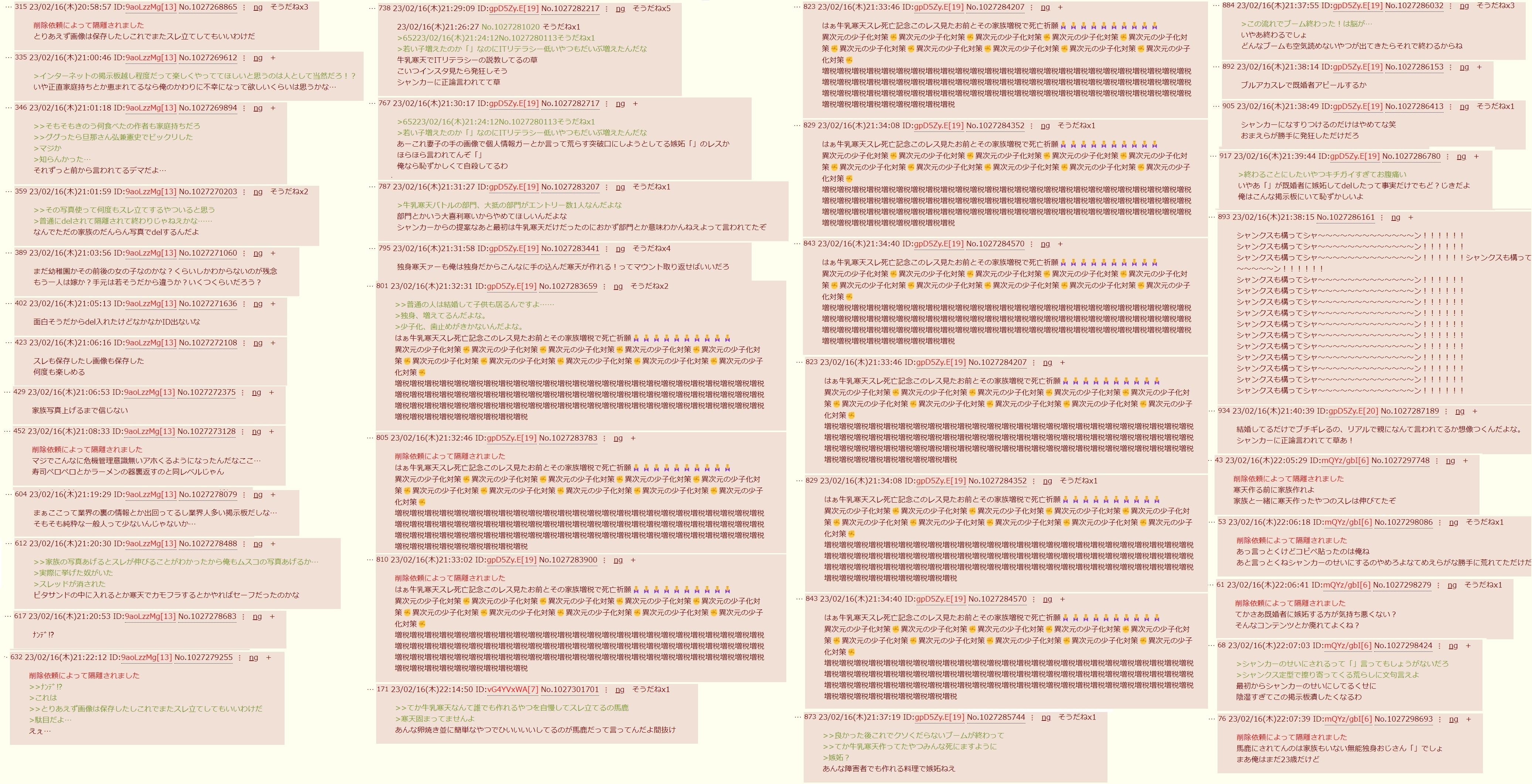 | … | 1325/09/11(木)06:00:51No.1352030247+>お前らいつになったらヒジキさんの鍵アカ凍結出来んの? |