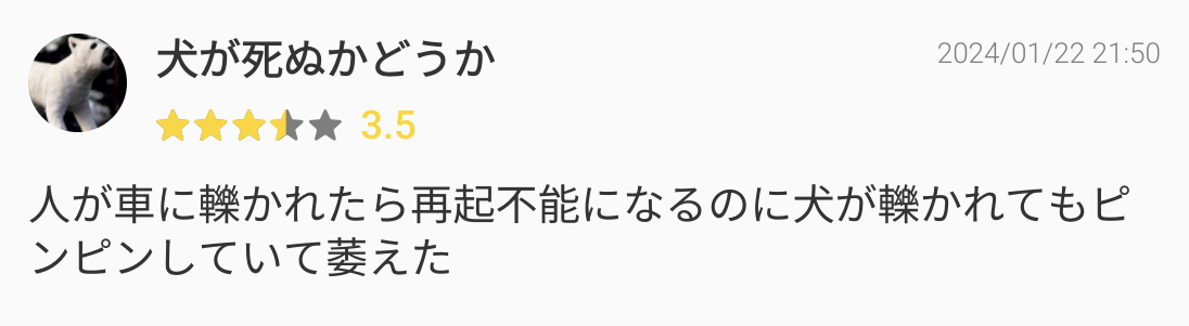 | … | 1625/09/11(木)06:05:39No.1352030441そうだねx1あいつ犬飼って無かったら死んでたな |