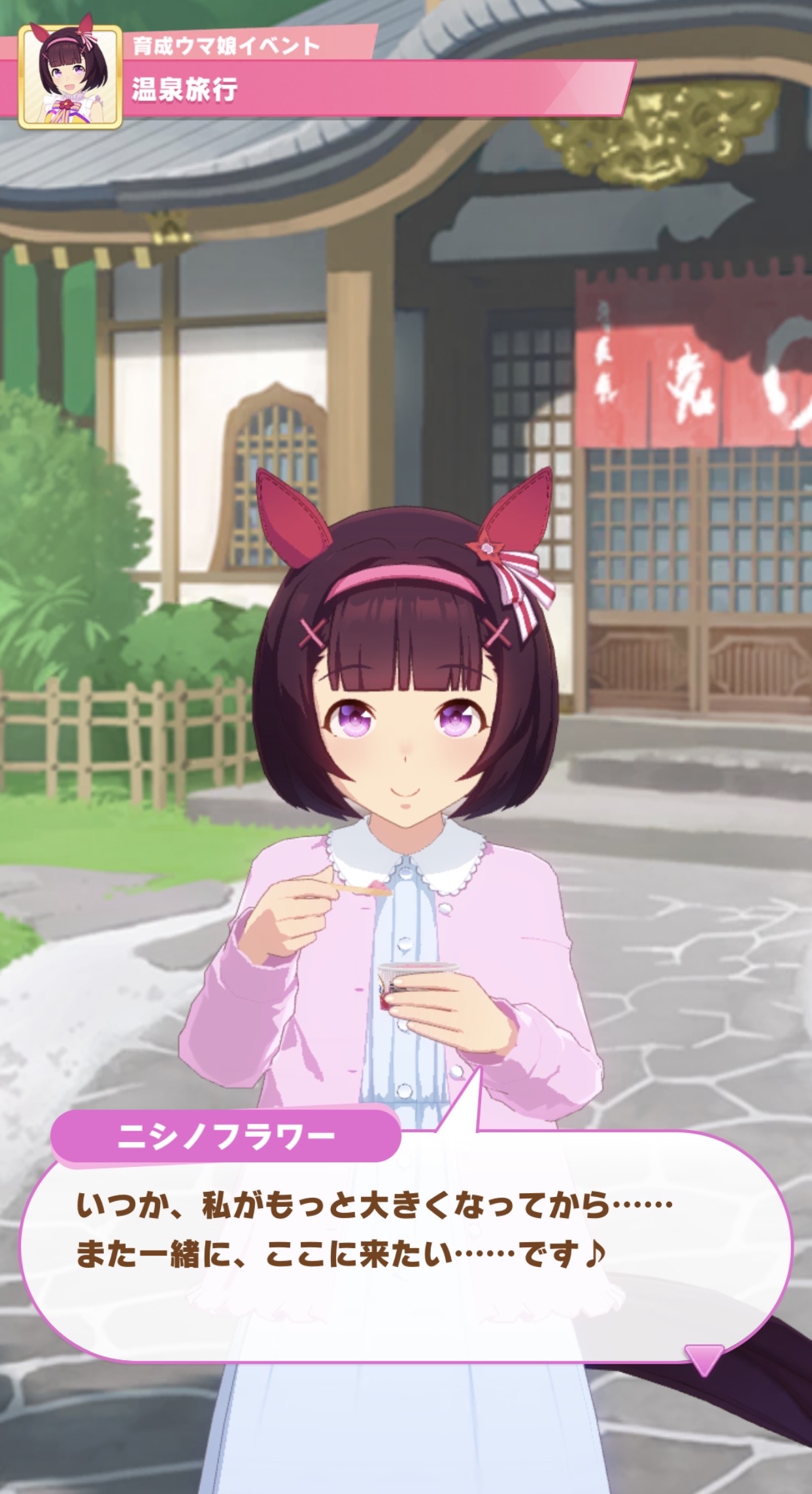 | … | 2925/09/11(木)15:09:41No.1352120901+>その温泉イベントのラストが「今度は二人きりで来ましょうね…🌷」だよ |