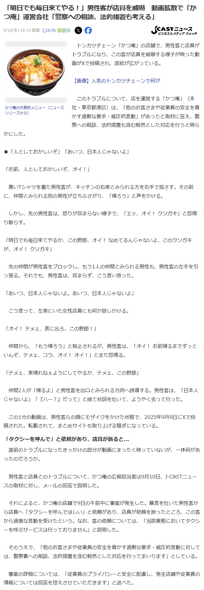 | … | 2825/09/12(金)01:31:40No.1352301282そうだねx10かつ庵の店員にタクシー頼むなよ... |