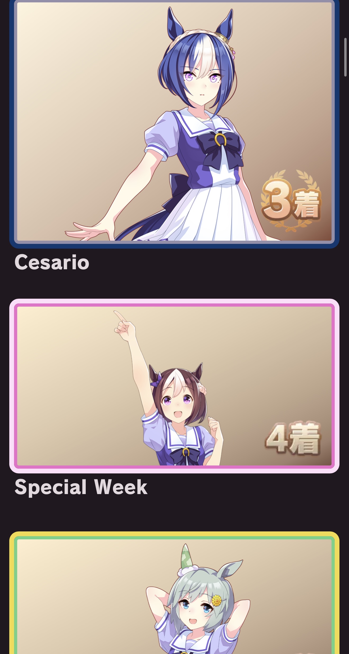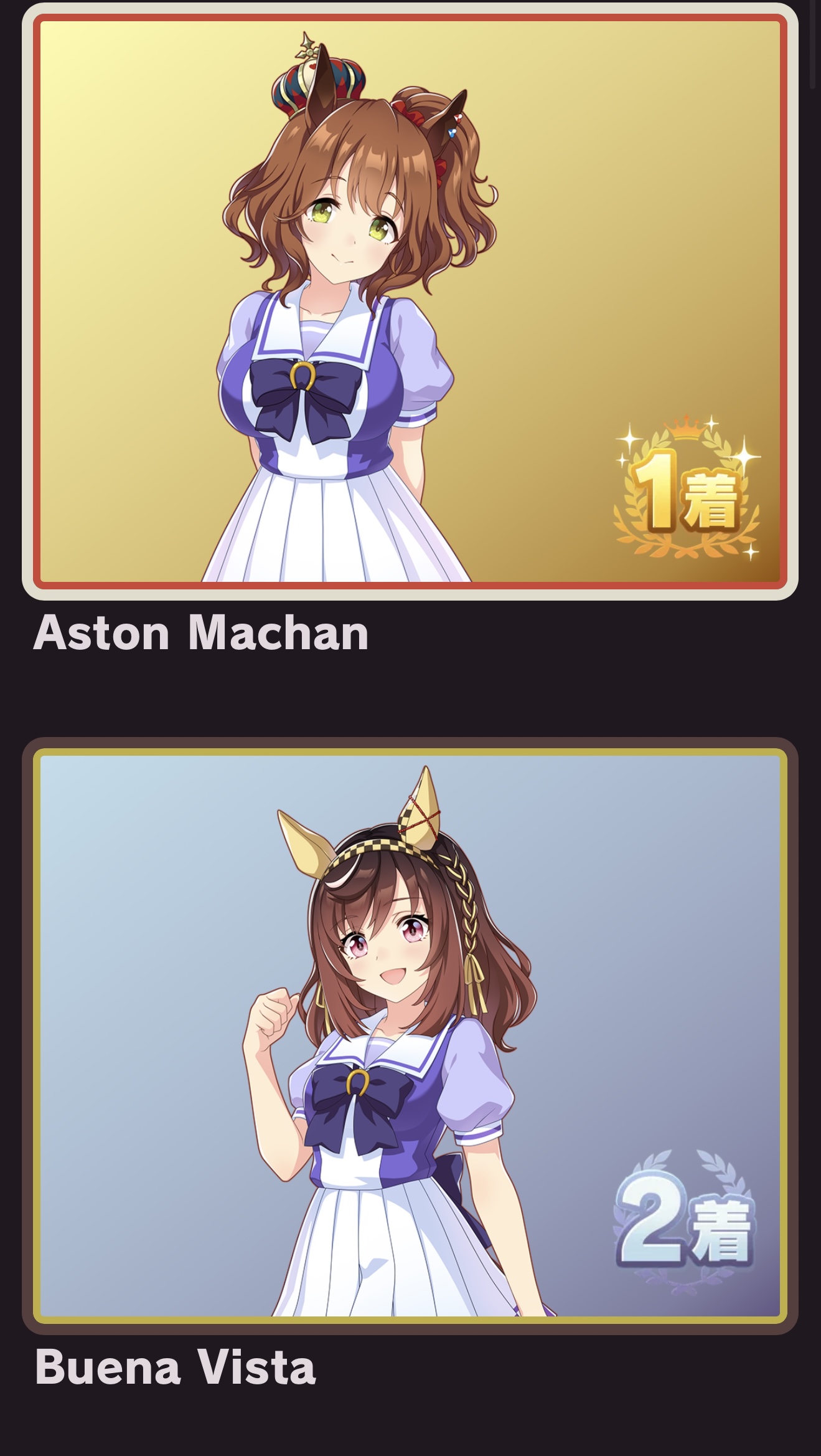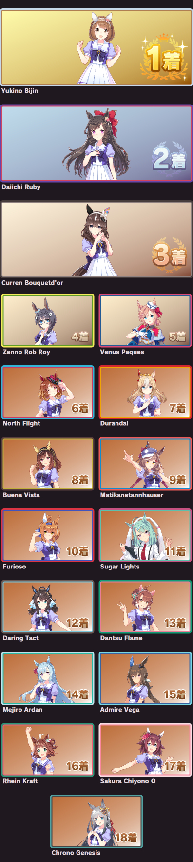 | … | 51325/09/12(金)08:21:49No.1352328457+私はウマ娘ちゃん見たら好きですとしか言えない体なのでそういうランキング表でもやって無理やり順位付けた方が楽かもしれませんね |