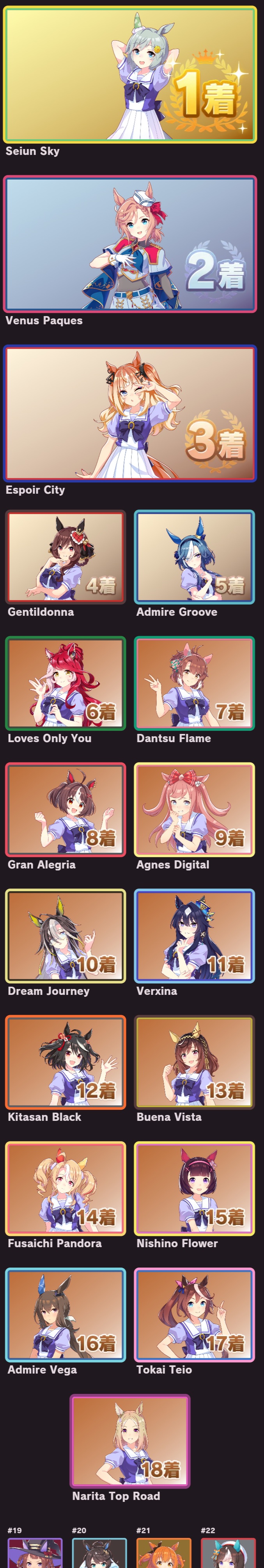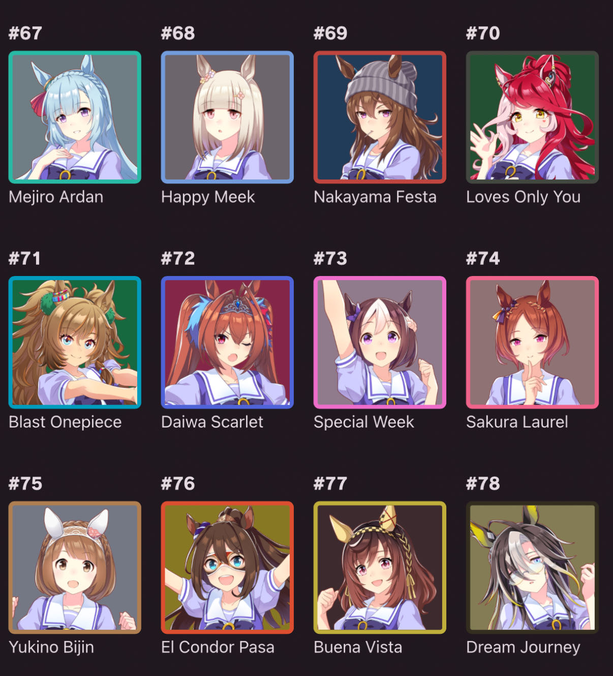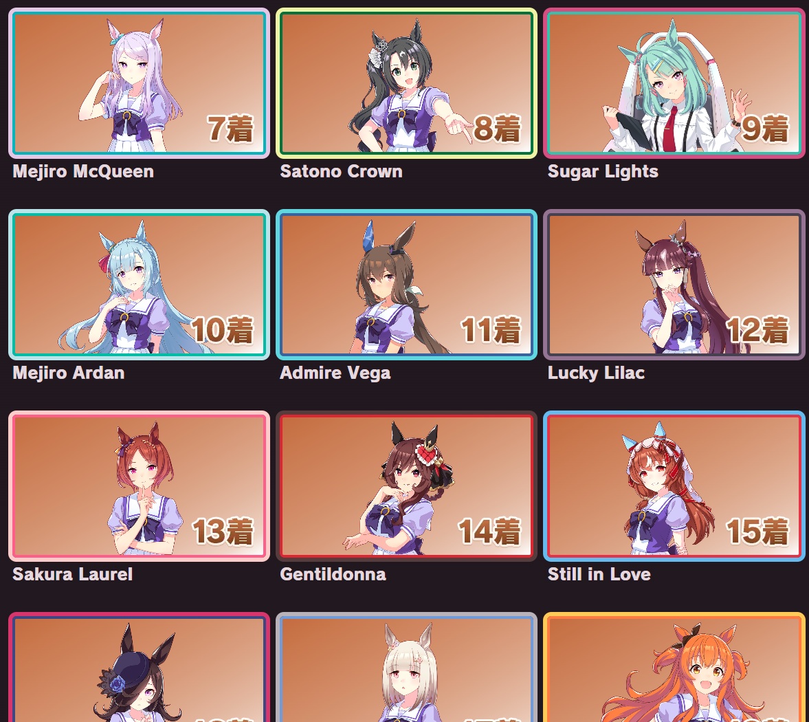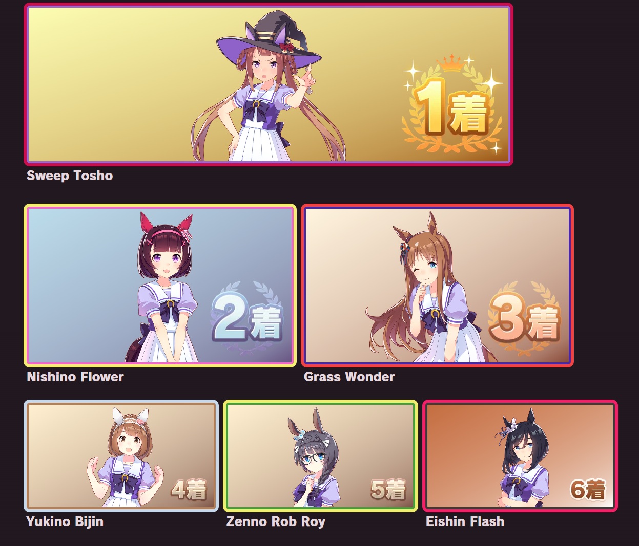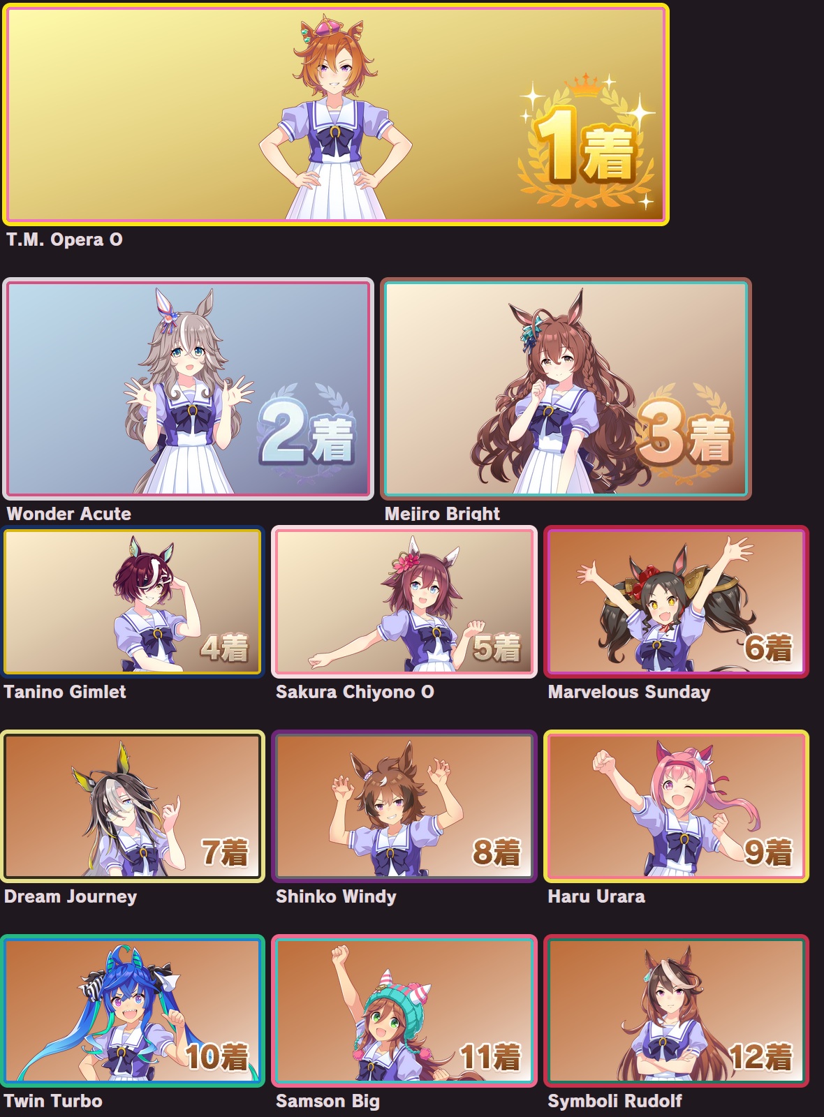 | … | 33625/09/12(金)11:55:47 ID:FA.03sEgNo.1352362545+個人的にオグリさん1位他数人が2位後は全員平等に好き!って感じなのでこの手のやつと相性すこぶる悪いです |