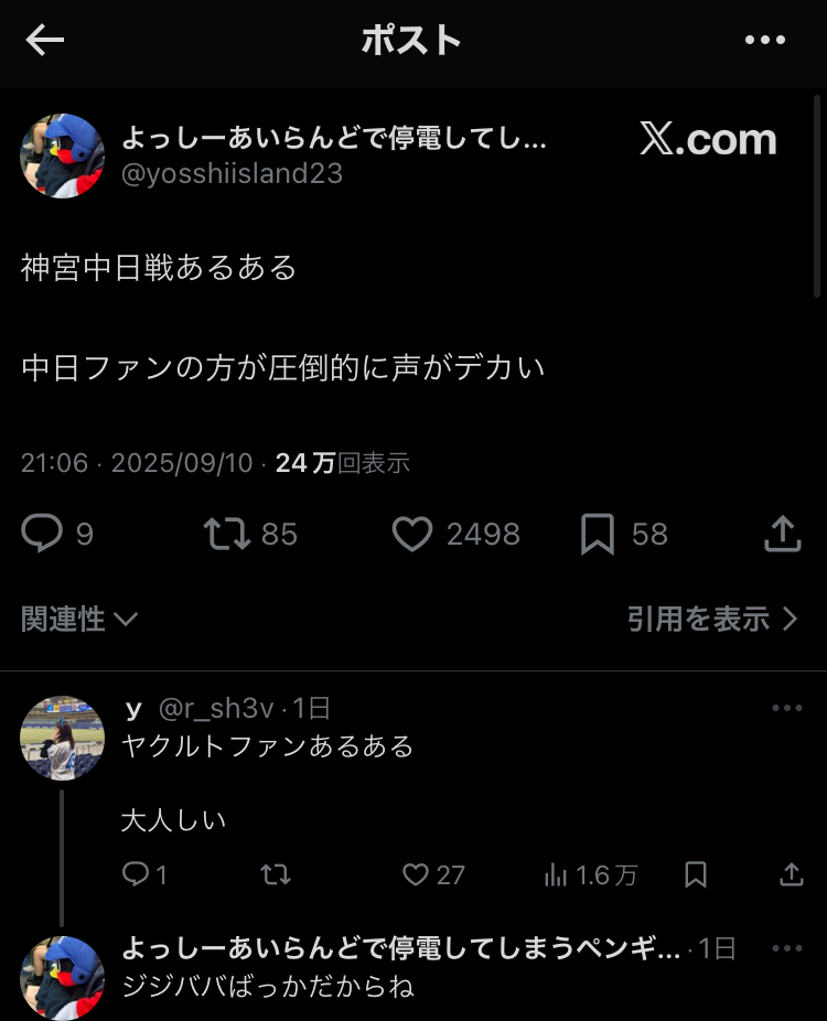 | … | 29125/09/12(金)10:02:12 ID:ISCYLju2No.1352343224+昨日は危なくないのも含めてとはいえ両軍5死球なのに警告試合にもならないし |
