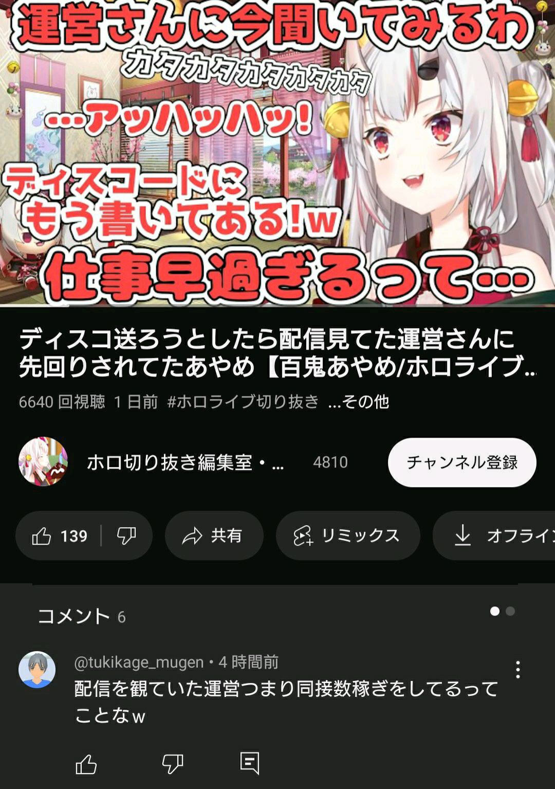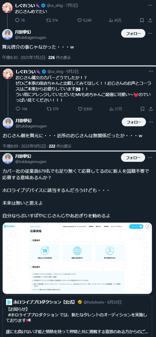 | … | 5325/09/12(金)16:01:42No.1352418192そうだねx12まだ「マネージャーが夜中まで配信監視させられてる!ブラック企業だ!」みたいなこと言った方がマシだろ |