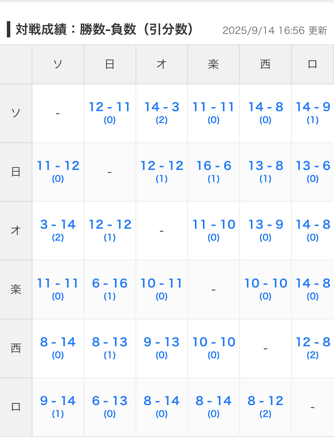 | … | 9625/09/14(日)21:55:32 ID:Q9MSOnh6No.1353278902+オリックスはせめてロッテぐらいソフトバンクに勝ってれば |