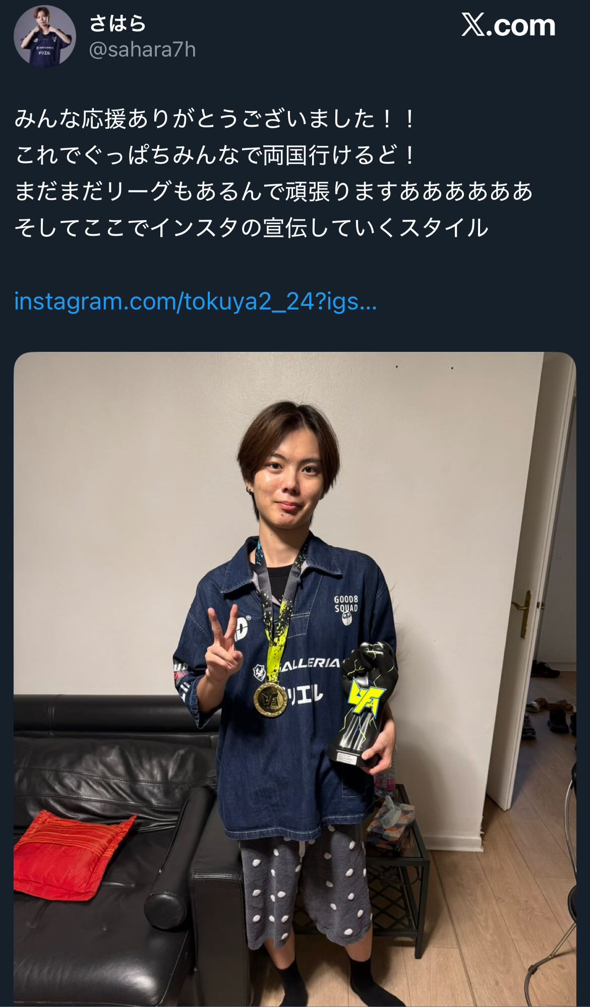 | … | 60525/09/15(月)11:07:22No.1353415254+いっちー最近海外大会に精力的に参加してるがどこにも所属してないしどこかからスポンサードされてるわけでもないっぽいということは全部自費なんかな… |