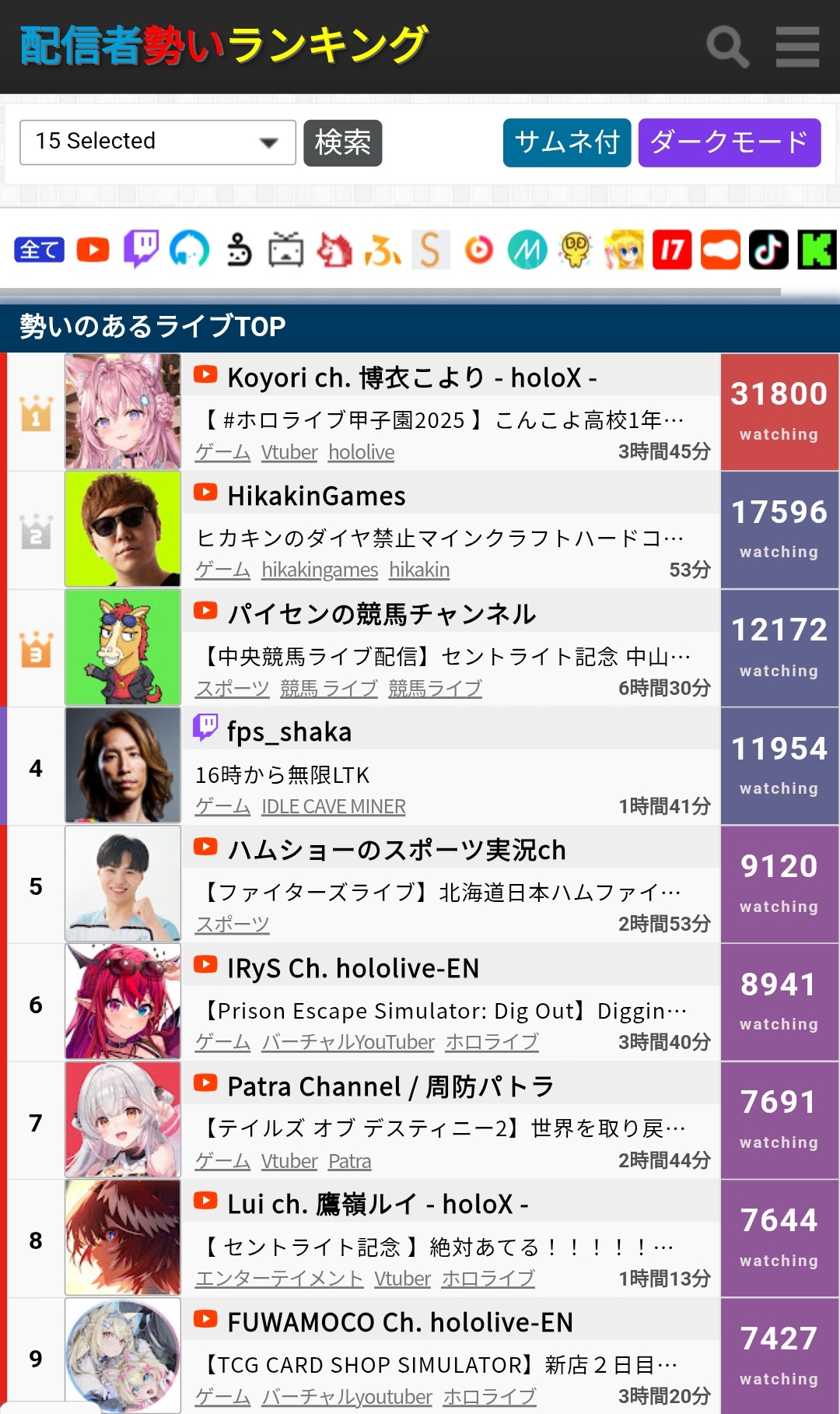 | … | 2725/09/15(月)22:35:57No.1353635357そうだねx9グウェルさんの愛のある100万人記念配信が同接1000人きってるとか嘘やろ… |