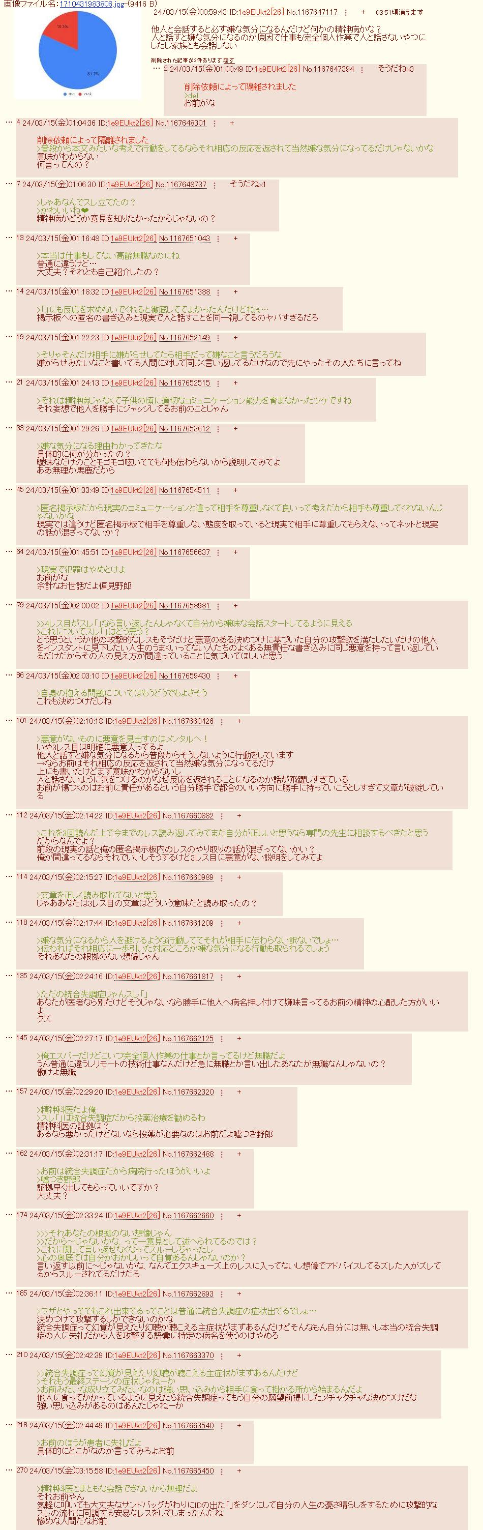 | … | 24825/09/17(水)01:08:05No.1353991520+>いや…ID出ても喋り続けてるのは異常なんですよ… |