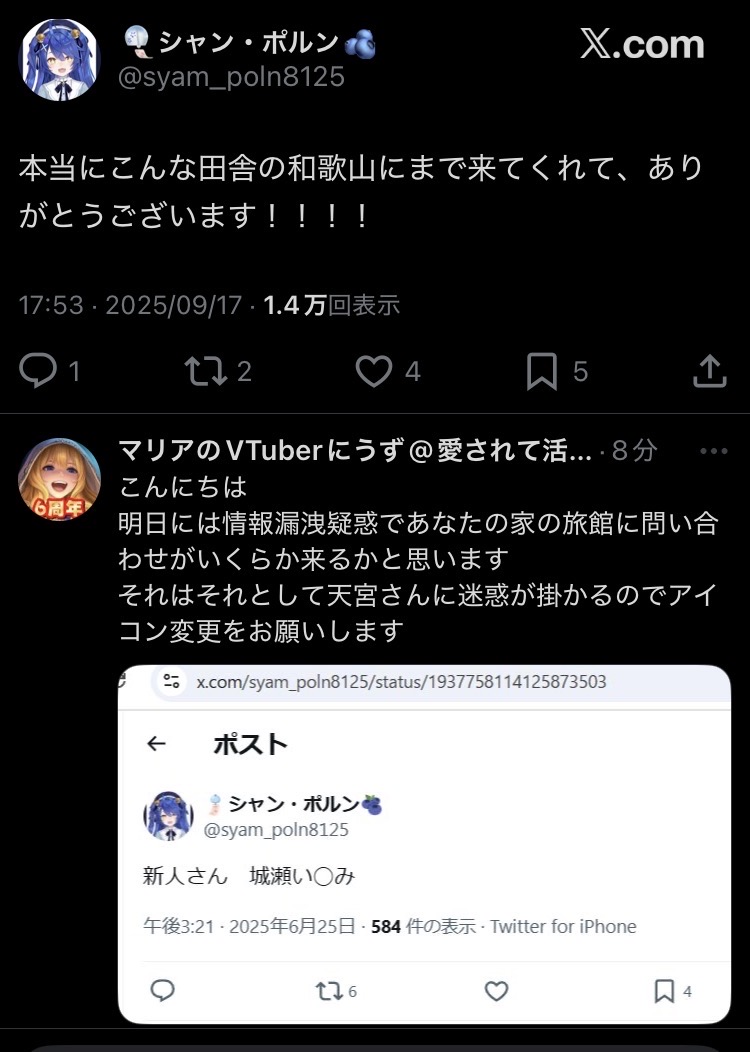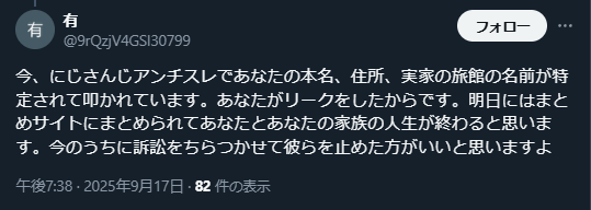| … | 1225/09/17(水)19:31:43No.1354172116そうだねx7何の画像だよと思って調べたらまとめサイトのVtuber粘着ネタでした |