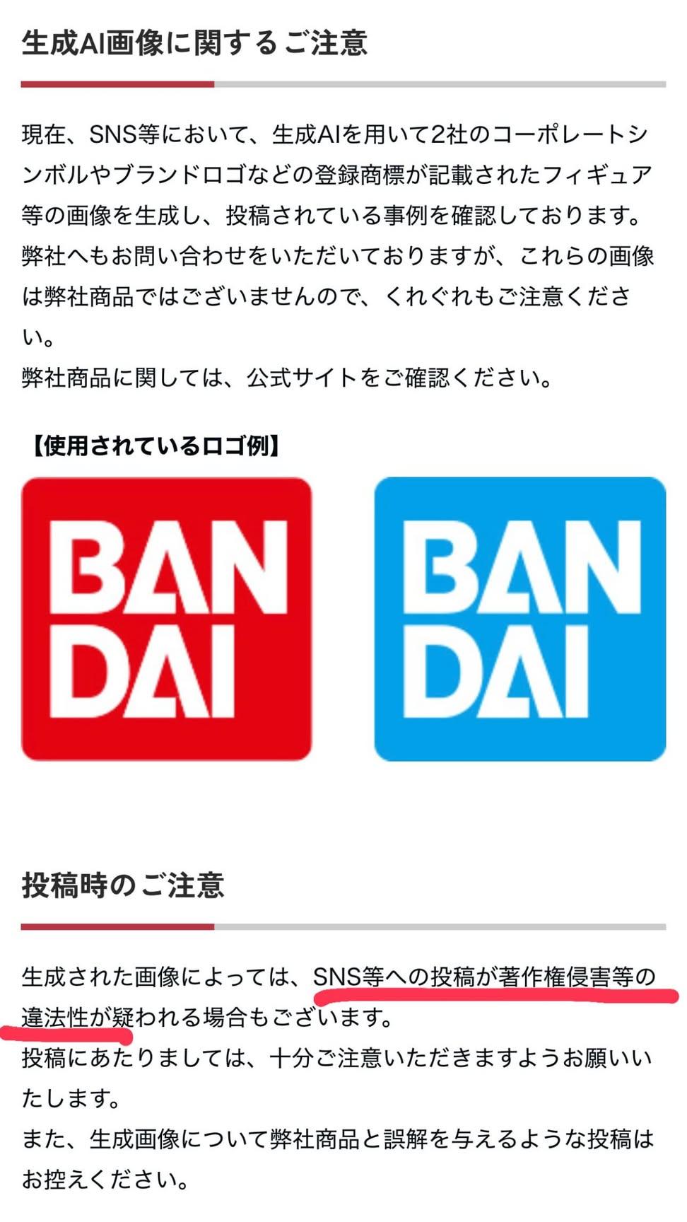 | … | 8225/09/18(木)00:31:16No.1354282693そうだねx4>プレスリリースとして出してるからガチでバンダイが問題視してるってのが伝わってくる |