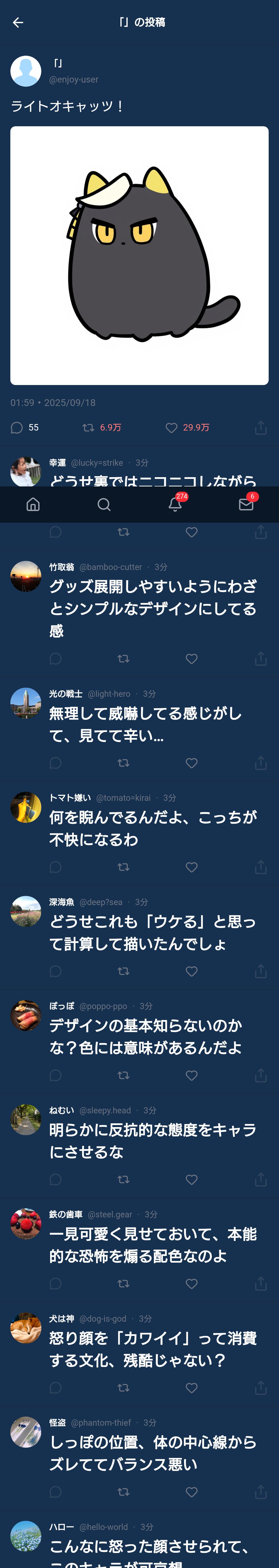 | … | 625/09/18(木)02:29:23No.1354302816そうだねx12こういうのは「あーこういうネットの書き込みよく見る」感がないとイマイチ |