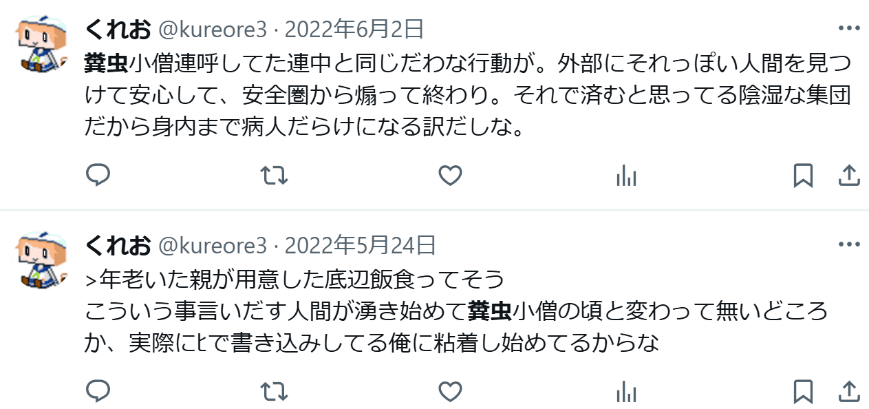 | … | 19625/09/18(木)11:46:31No.1354358013そうだねx4荒らしを叩く側に回ろうとしても頭の悪さで結局叩く側からも浮くっていう事例 |