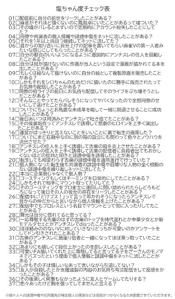 | … | 57125/09/19(金)12:45:02No.1354665412そうだねx2>>塩ちゃんに比べたらにじさんじなんて可愛いもんさ |