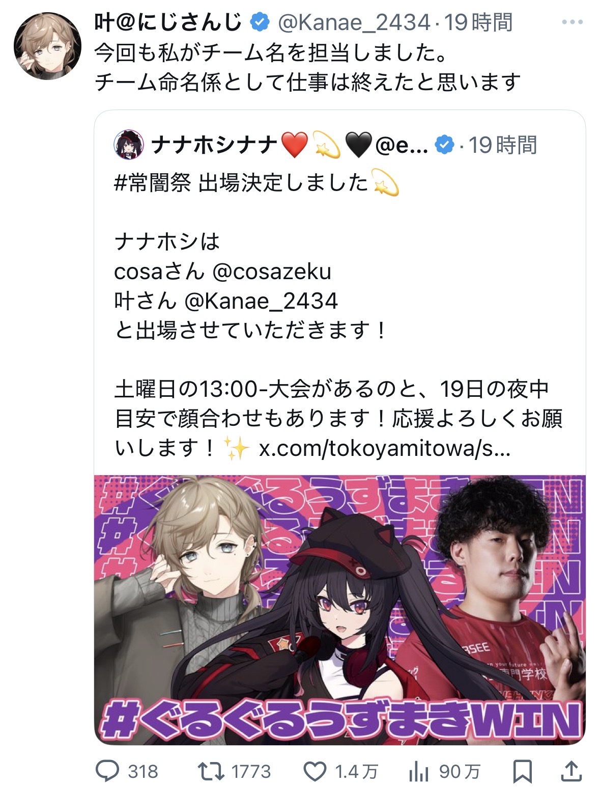 | … | 4725/09/20(土)08:43:10No.1354921528+>たまこと🐰ってどっちがキャリア長いんだ? |