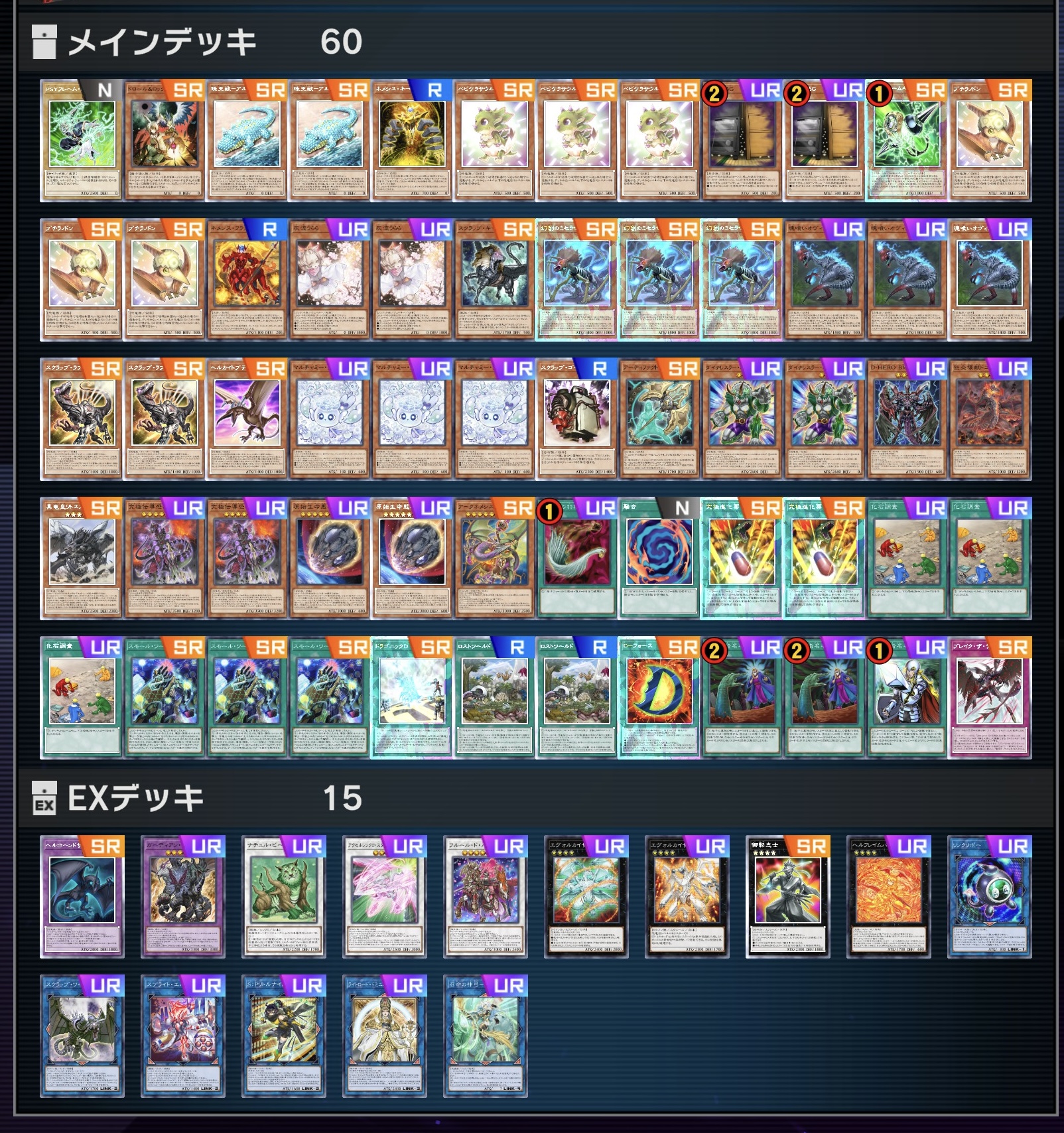 | … | 5725/09/21(日)12:47:31No.1355334493+bloo-Dデッキって副葬と盤面の余り物3つとメイン3枠用意できればOKだからな |