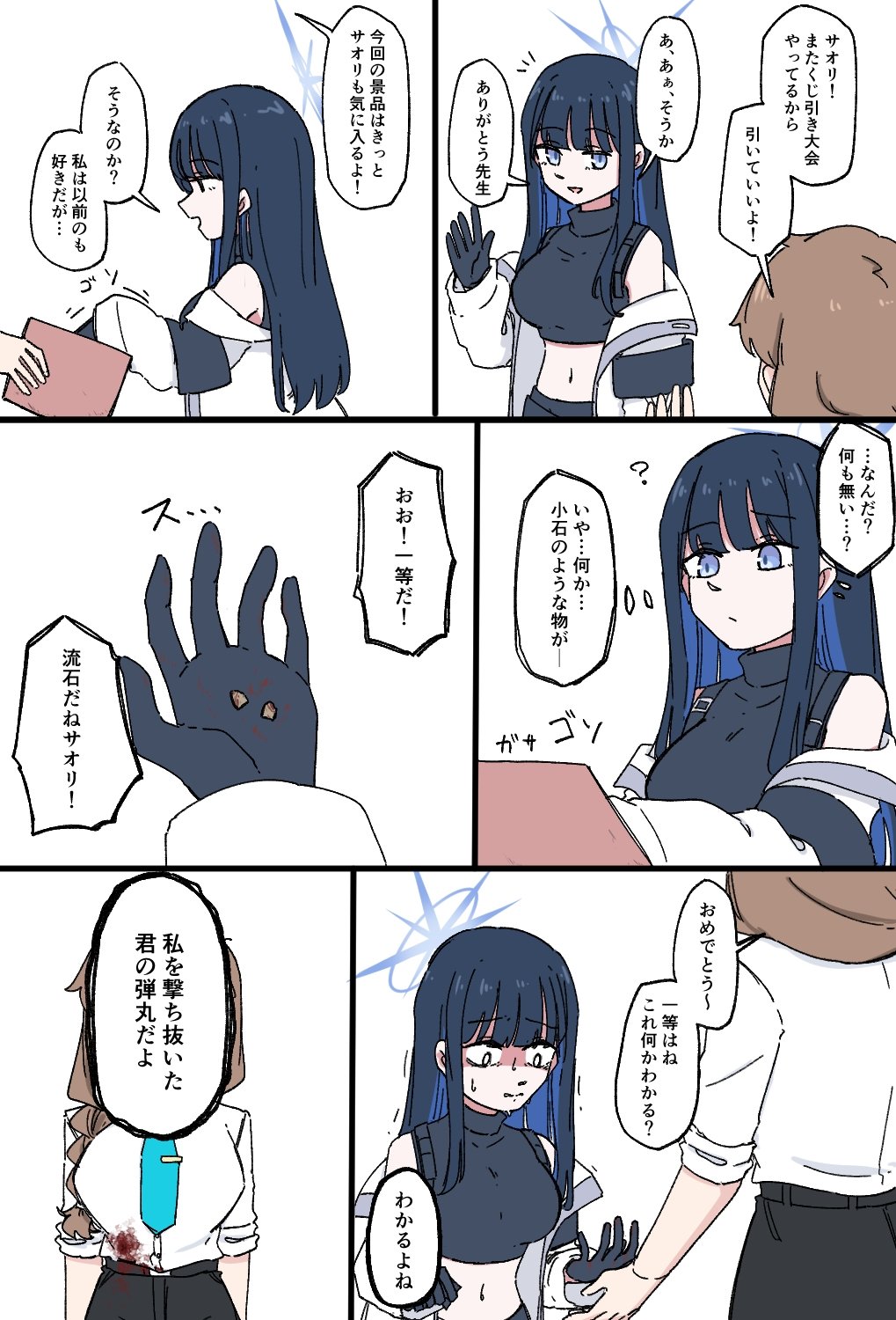 | … | 2825/09/22(月)16:04:31No.1355704834そうだねx1先生を撃った件はサオリにとって先生と親しくなればなるほど呪いのようにまとわりつくからつらい |
