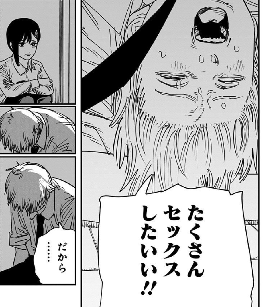 | … | 7525/09/23(火)18:15:52No.1356062004+デンジの性欲は食欲や普通のところで寝るのと同じでそういう事が今までは絶対できないからやりたいやりたい言ってるようなもんなのは度々言われてる |