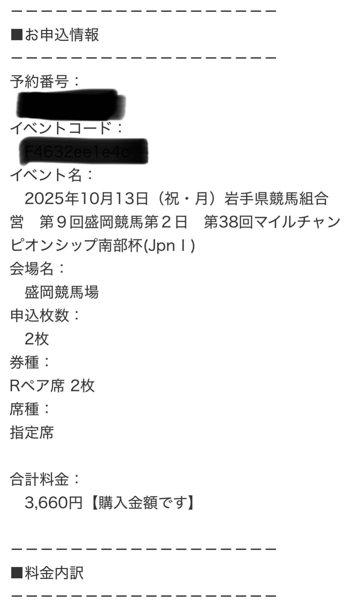 | … | 41125/09/24(水)15:15:43No.1356336126+>>>うひょー!南部杯の指定席当たってました!南端から初の東北遠征です!楽しみー! |