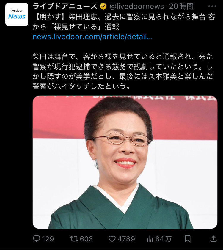 | … | 4025/09/26(金)16:36:39No.1356973405そうだねx42「おまわりさん舞台で裸になってる人がいます」 |