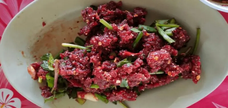 コイを生のままミンチにした郷土料理だ