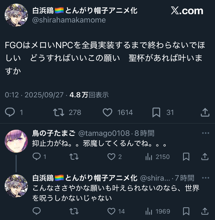 | … | 5925/09/27(土)08:06:54 ID:7iPxHDq6No.1357185605+FGOはガンダムに擦り寄るな |