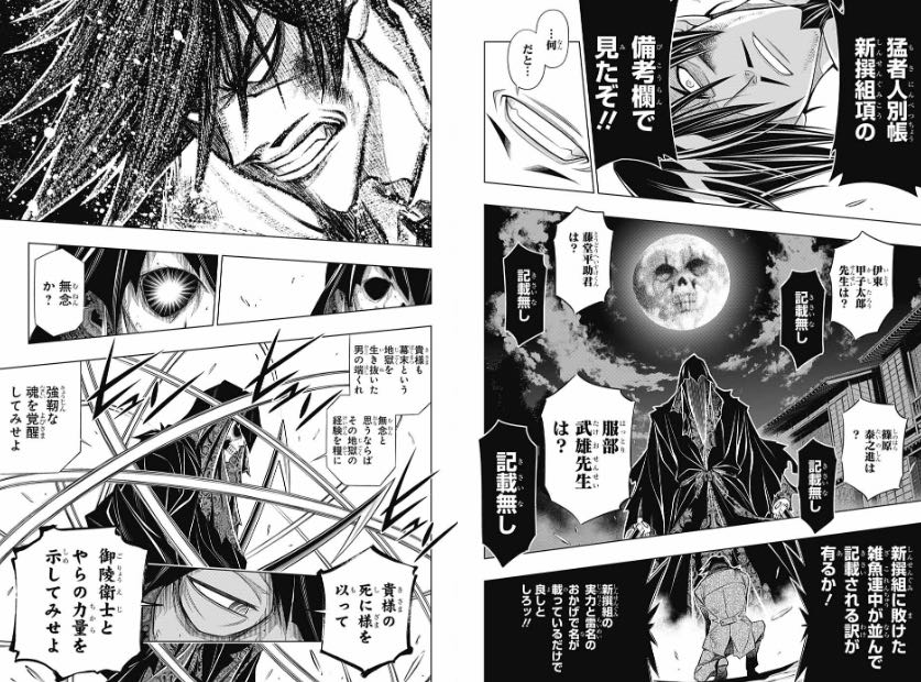 | … | 31525/09/27(土)09:33:50 ID:DH./QuD2No.1357200338+>何故和月があれに武田観柳なんて名付けたかと言うとるろ剣序盤の方は完全に新選組オマージュキャラが敵キャラだったから |
