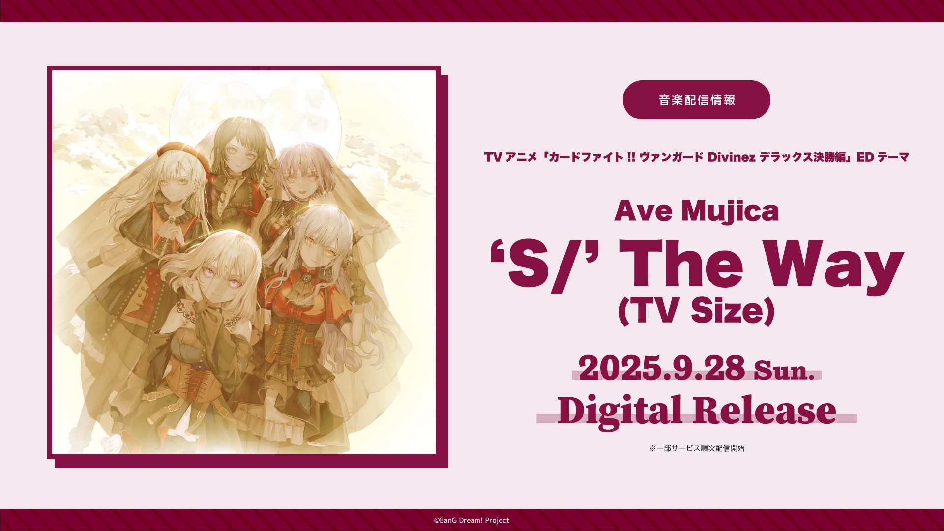 | … | 1525/09/27(土)10:06:49No.1357206876+>配信のジャケットが今度出るシングルのやつだったので1曲は当確ですわね…もう一曲はDIVINEか碧い瞳か… |