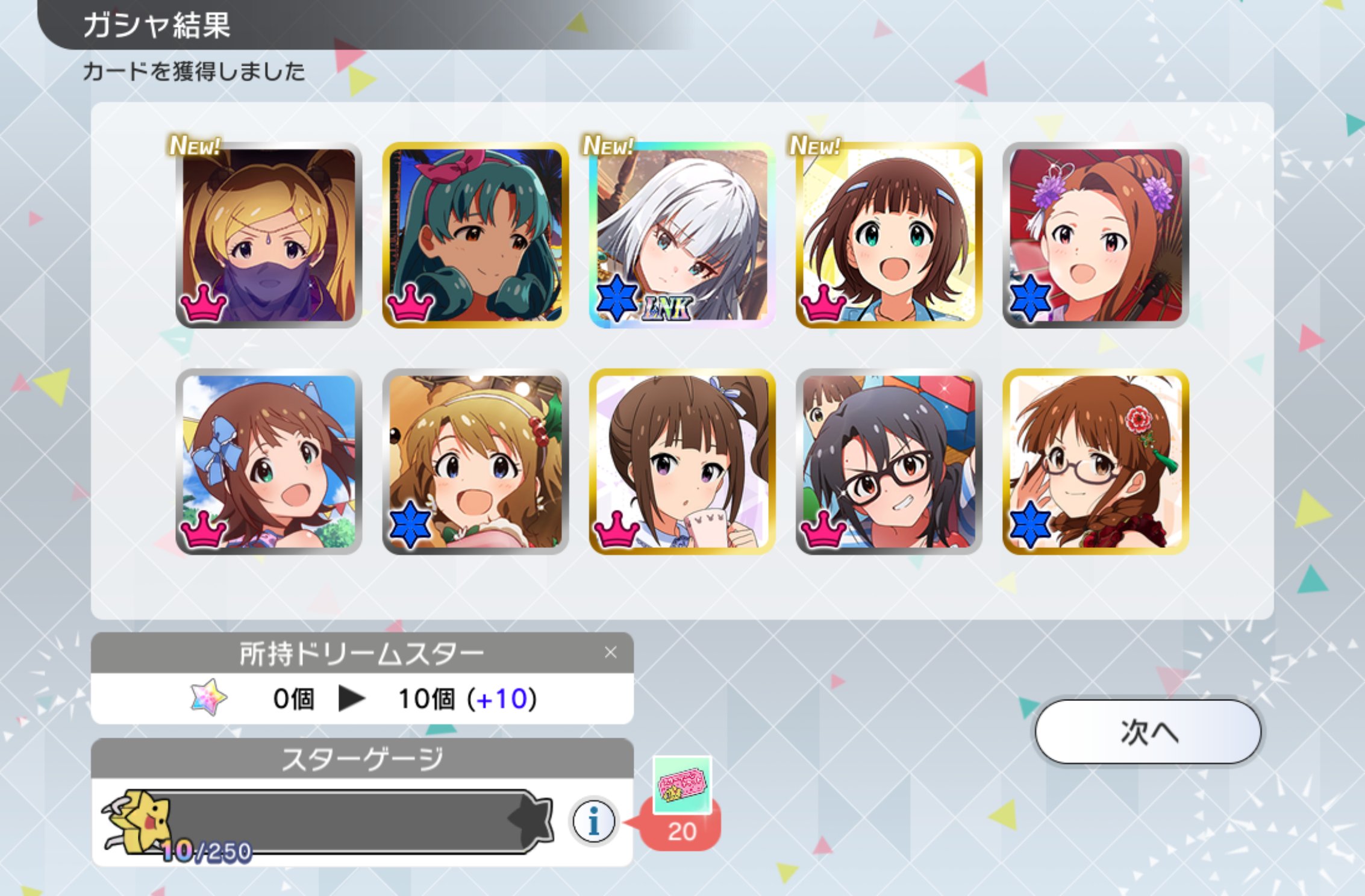 | … | 11625/09/27(土)15:40:42No.1357297931+>リンケってそこそこ出るけど両方取ろうとすると大変なの… 自分もエミリー取るまでに紬9人きて笑ったぞ |