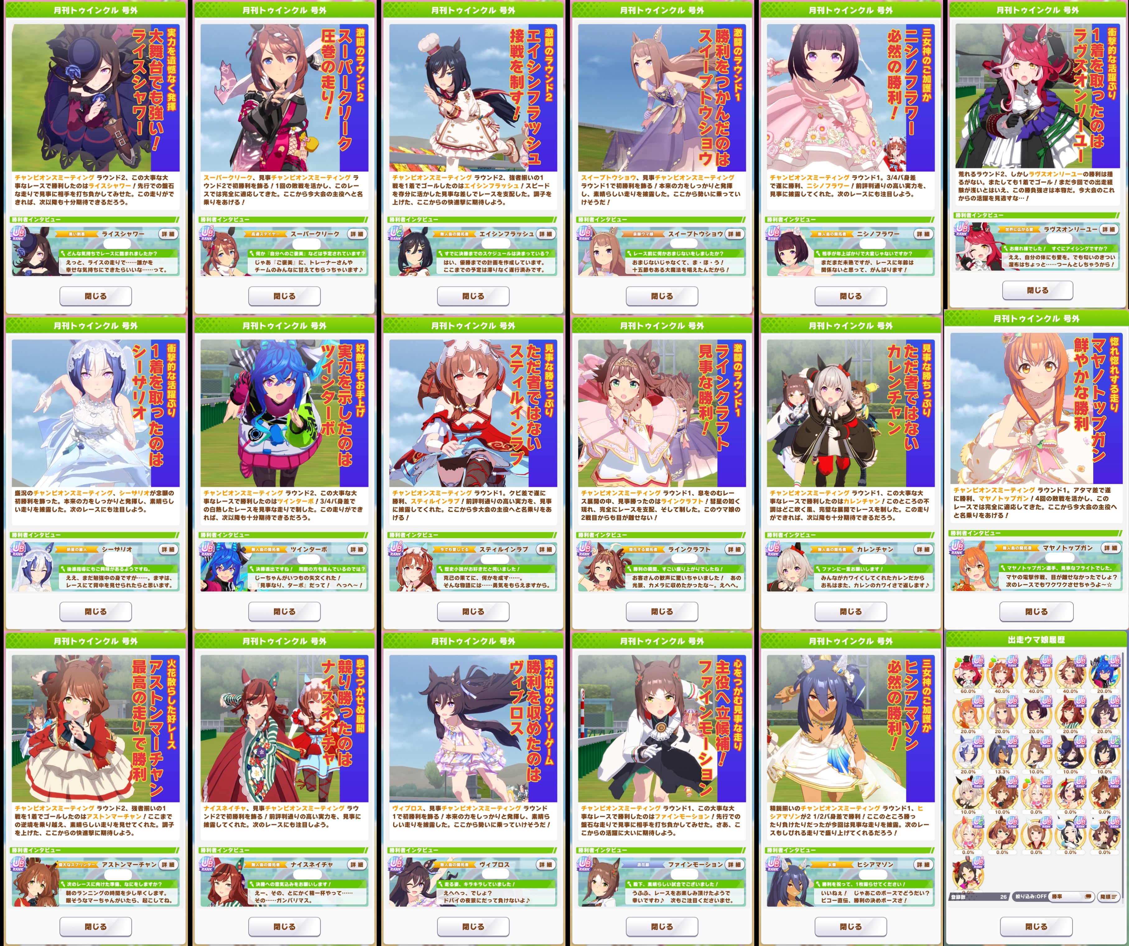 | … | 5025/09/27(土)17:35:26 ID:uQmsOXcgNo.1357330265+真髄とアオハルをコピーするために周回してるんですがいよいよオグリさんの私服解放が見えてきましたよ… |