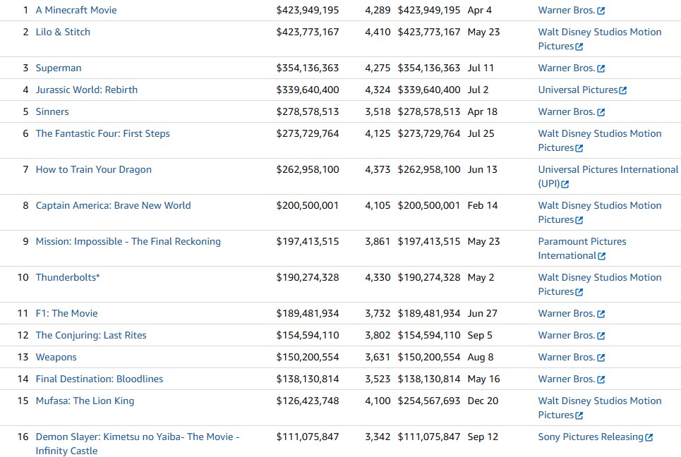 | … | 6025/09/27(土)19:29:09No.1357369330そうだねx3>まあディズニーの方のMCU本体も今年出た3本が世界売り上げで鬼滅1本に負けるぐらいもう死に体なんやけどなブヘヘh |