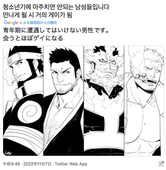 | … | 1025/09/28(日)01:23:42No.1357499066そうだねx1左から三人はよく「」がホモホモしてるキャラって感じで知ってたけどスモーカーもそんな扱いなの…? |
