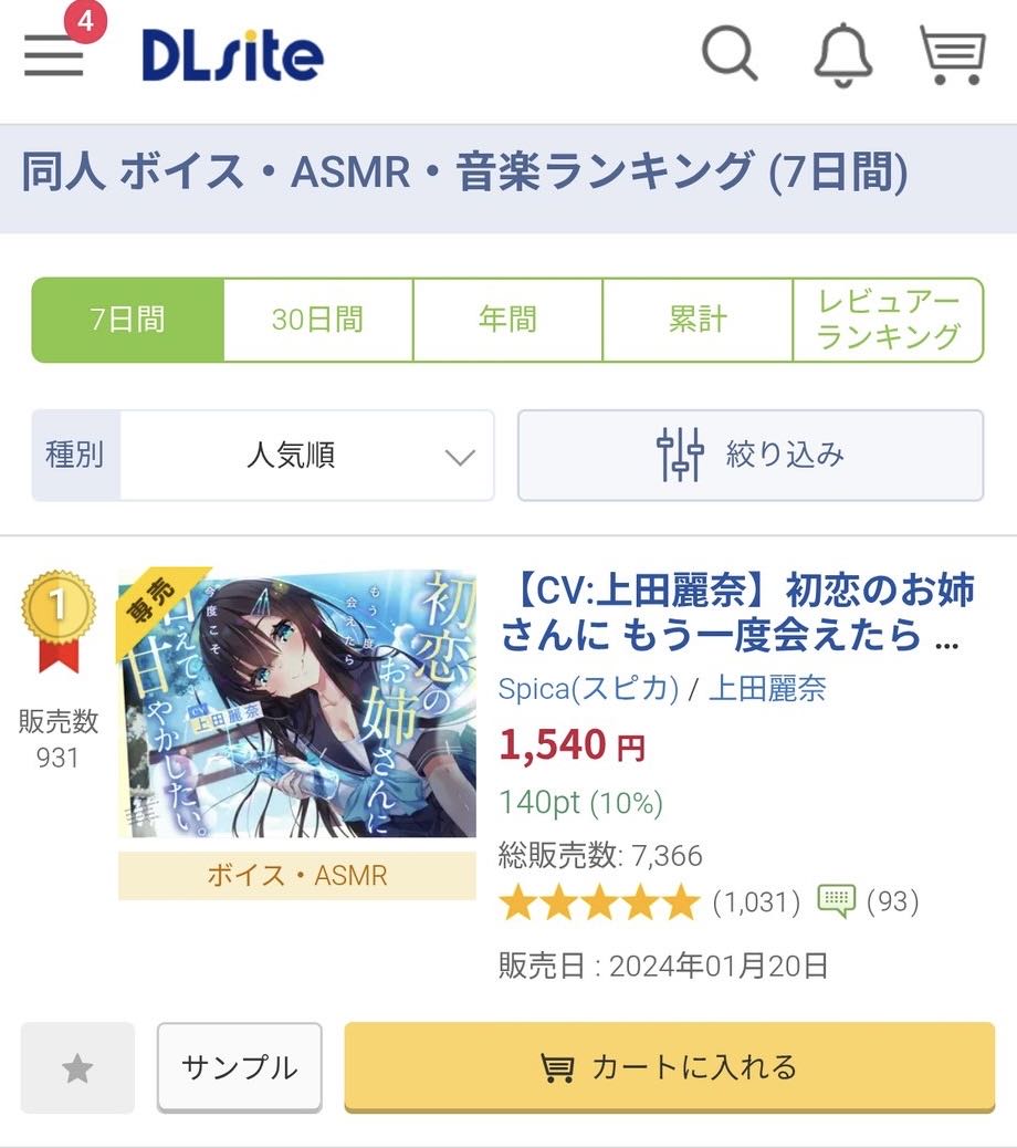 上田麗奈のASMRが軒並み売れているこのスレは古いので、もうすぐ消えます。