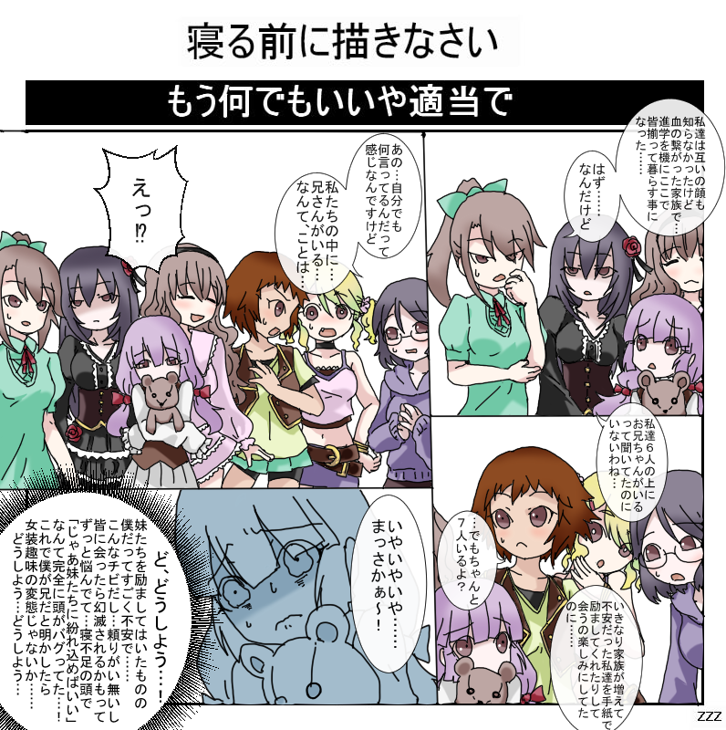 | … | 5525/09/28(日)11:33:33No.1357589758+一人一人メンタルケアして重くなった所に女装ロリ兄という劇物をぶつける |