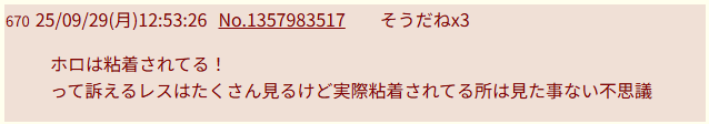 | … | 725/09/29(月)13:19:27No.1357990309そうだねx18>ほらやっぱホロ粘着するじゃん |