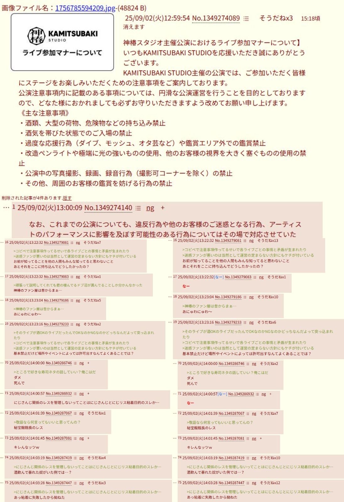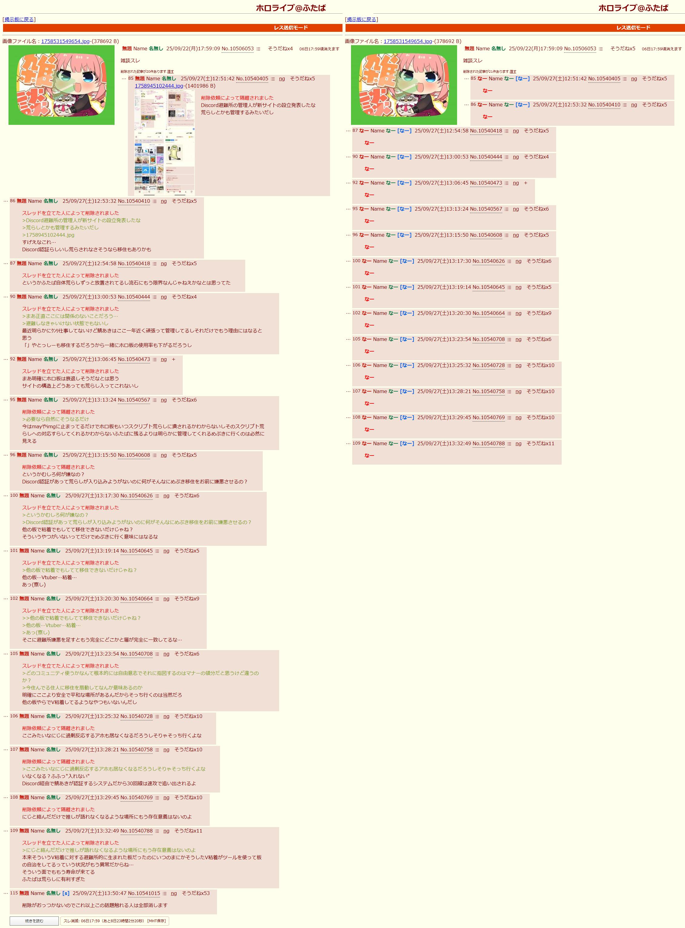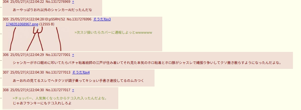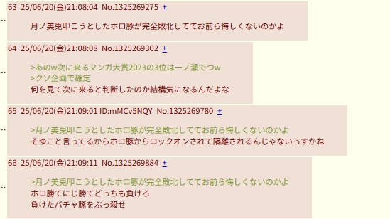 | … | 2025/09/29(月)13:22:32No.1357991097そうだねx32自分からホロ粘着と明かしていくのアホでしょ |