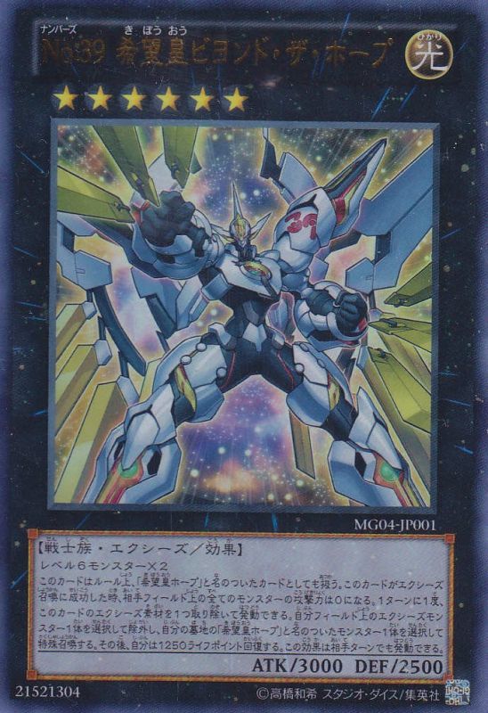 | … | 3925/09/30(火)09:24:26No.1358282440+後半の効果はバトルフェイズ以外でも発動でき、希望皇ホープを素材にしなくても使えるようになり、希望皇ホープ全般を蘇生できるようになった。 |