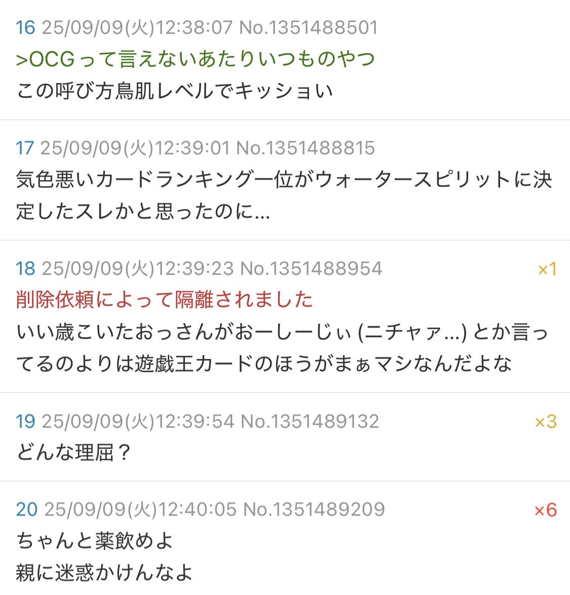 | … | 2025/09/30(火)17:52:26No.1358393031そうだねx4どれだけ訂正されても「遊戯王カード」という言い方をやめないのも障害者じみてますね |